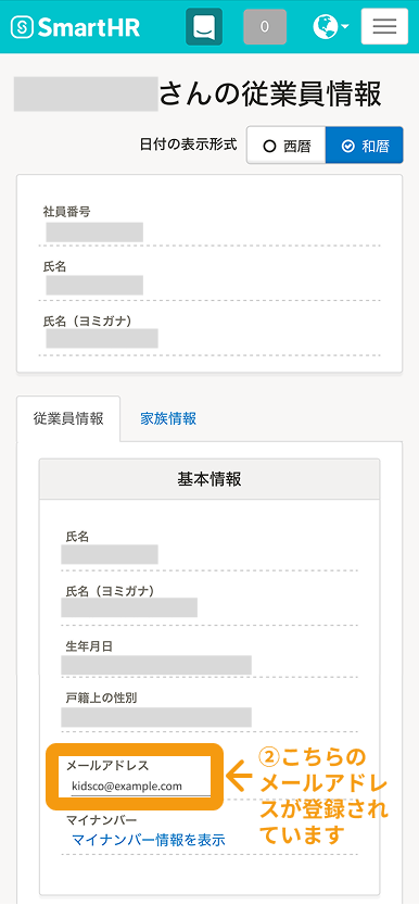 園スタッフの場合、SmartHRに登録した個人のメールアドレスがメールアドレスとなります。